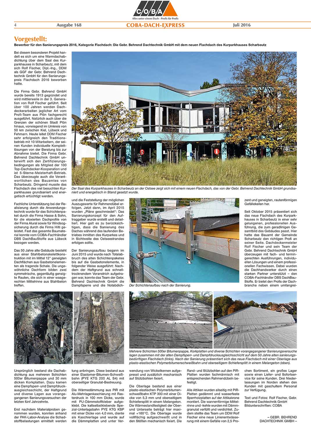 Nach 105-jähriger Firmengeschichte über 3 Generationen hat die Fa. Gebr. Behrend Dachtechnik GmbH zum 30. Juni 2018 die handwerkliche Tätigkeit eingestellt.